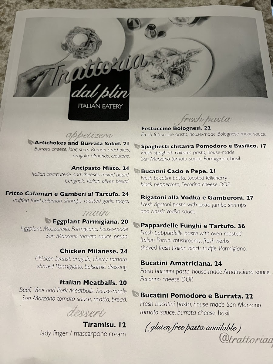 - Chicken Milanese: For something with a bit of crunch, indulge in the Chicken Milanese—a perfectly breaded chicken breast served atop fresh arugula and cherry tomatoes, drizzled with balsamic dressing for a refreshing finish at $24.